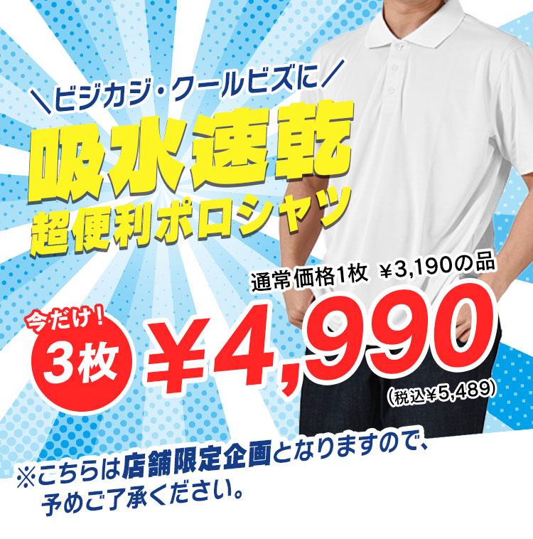 【店舗限定】ドライポロシャツが3枚5,489円